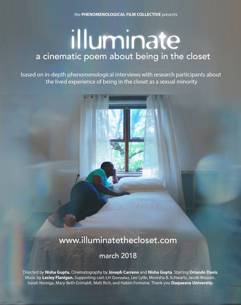 ILLUMINATE is an arts-based phenomenological research study about the lived experience of being in the closet as a non-hetero person. The research findings are disseminated in the format of a short film that evokes the lived experience of being in the closet via sensual, poetic cinematography.